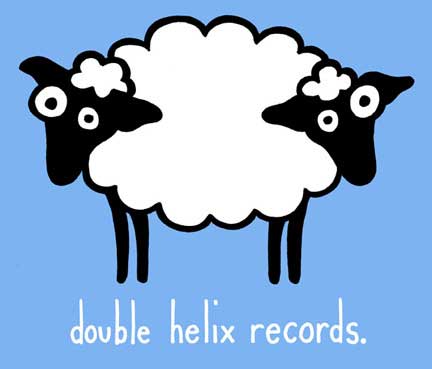 This is one of my favorite logo designs. It suggests genetic engineering gone awry in a funny way, while maintaining a simple design which reproduces well at small size. The Double Helix Records gang have nicknamed the sheep "Polly," which I think is quite fitting.