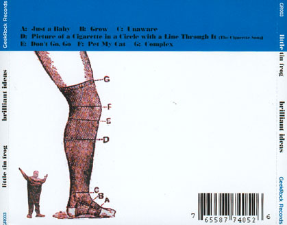 My lesson learned here is this: don't label your songs as letters, no matter how well it ties in with the artwork. There seem to be a lot of people who don't enjoy counting, even to lowish numbers like seven, and they delight in letting you know. As an aside, the "Happy Man" (in the lower left corner) also appeared on several of our mailers, to the delight of me.