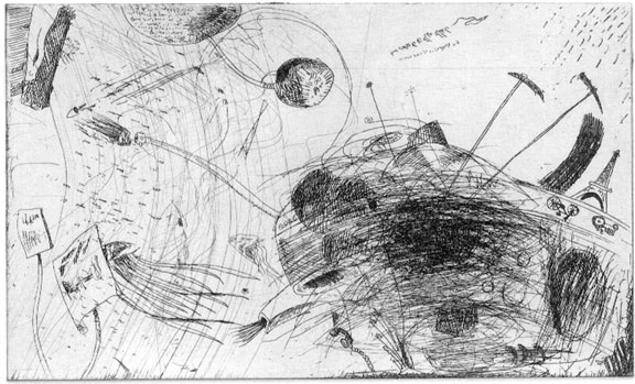 The Tube-headed One emrged from the group. "A woman had dreams of hideous abstractions. The sounds were as jumbled and quick as her fleeting images. She felt confused and lost."