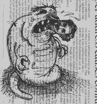 | Hello! This is my Other Stuff Artwork Page. This is where I'll be posting random snippets and bits of artwork that I've done that have little or nothing to do with my graphic design work. I would eventually like to put up all of my college printmaking work and all of my comics and sketches, but I have so many pieces and napkins and sketchbooks and placemats covered in art that it would take a small army to scan them all. So you and I will have to content ourselves with the meager and sporadic offerings I can afford.
